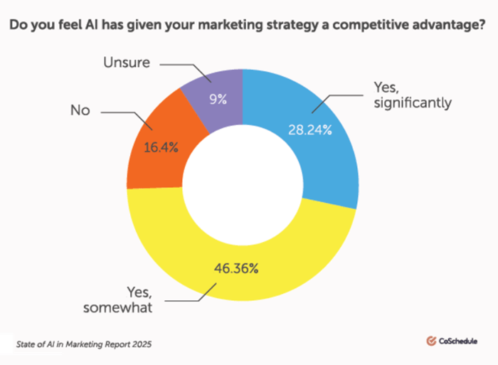The report found that 74.6% of marketers globally credit AI with enhancing their strategic edge.