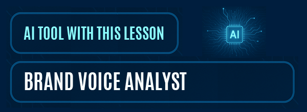 AI-Powered Exercise: The Brand Voice Alignment Challenge using our Brand Voice Analyst tool. You'll refine AI-generated copy to match specific brand personalities, receiving real-time feedback and brand match scores.