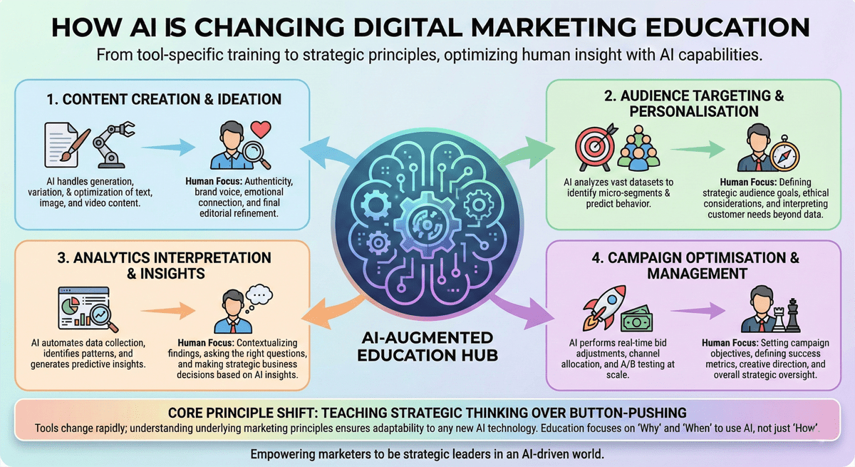 AI in marketing has moved from experimental to essential. Quality digital marketing courses now include training on how to use artificial intelligence tools effectively without losing the human touch that makes marketing work.