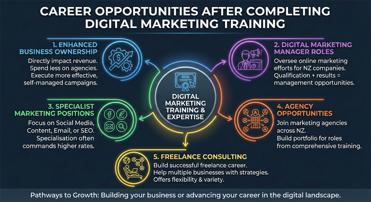 Choosing the right digital marketing course in New Zealand can feel overwhelming. With so many options promising to teach you everything from social media marketing to email marketing, how do you know which qualification will actually help your small business thrive?