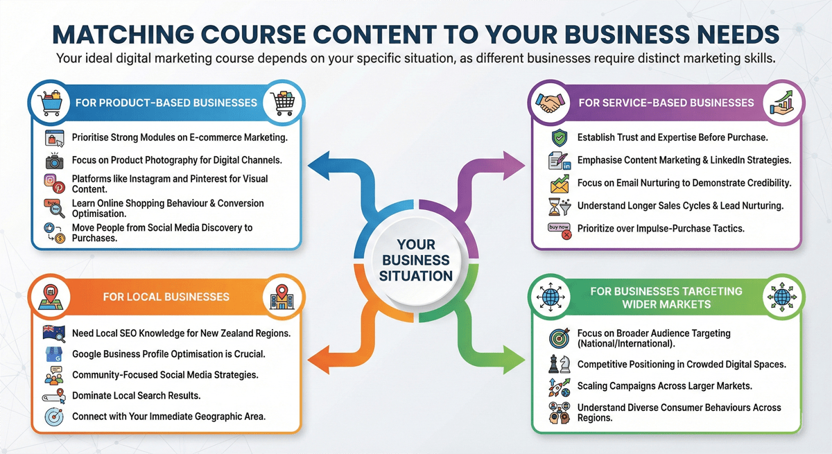 If you serve a specific New Zealand region, you need local SEO knowledge, Google Business Profile optimisation, and community-focused social media strategies. Your course should address how to dominate local search results and connect with your immediate geographic area.