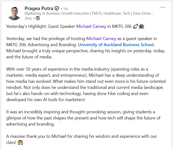 - “this was the best professional development course I have done in many years” – Mark R, senior Agency Exec responsible for social media