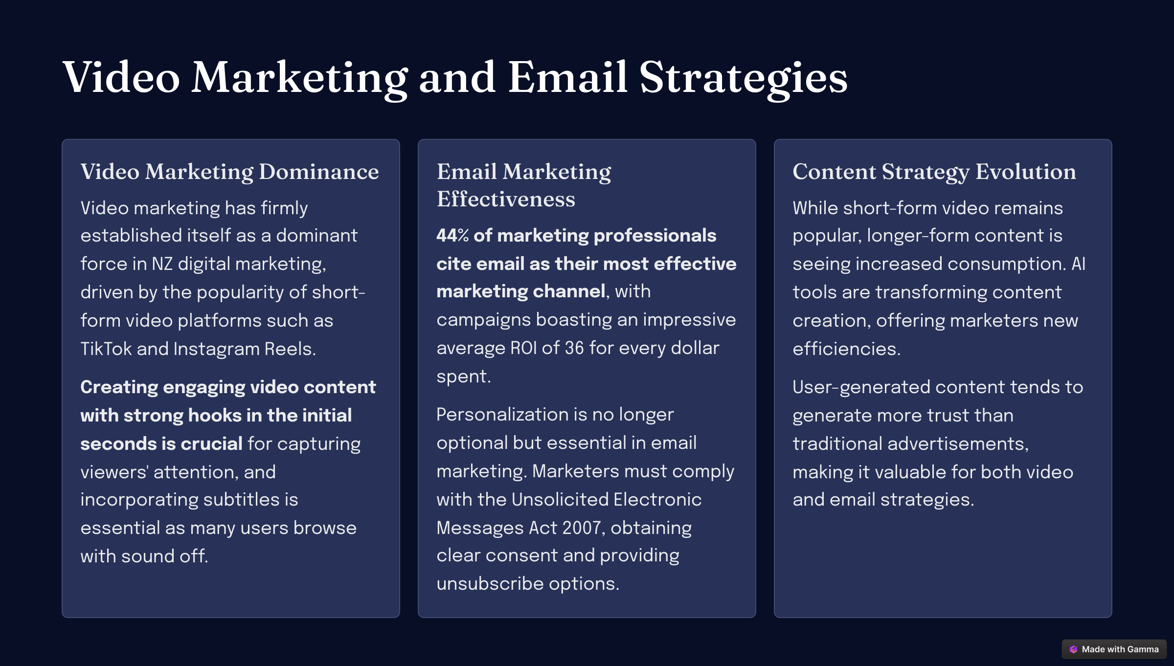 Despite the emergence of newer digital marketing channels, email marketing continues to be a highly effective tool in New Zealand, offering a strong return on investment. It allows for direct and personalised communication with customers, making it a valuable asset in the marketing mix. However, marketers must prioritise ethical practices and ensure full compliance with New Zealand's email marketing laws to maintain consumer trust and avoid potential legal issues.