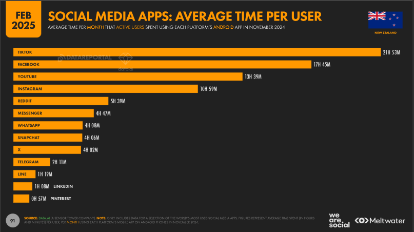 But the really BIG number is time spent on TikTok, nearly 22 hours per month: